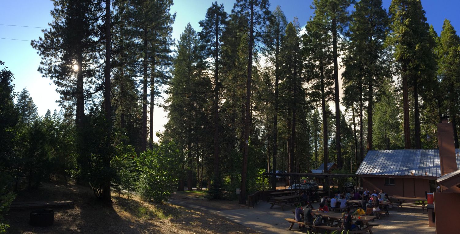 Therefore Camp Alta proceeded with things as usual. We welcomed in 100 plus campers for another week of camp in God’s presence yesterday afternoon. Our ministry partners from Laguna Chinese Baptist Church and Cornerstone Community Church of Sacramento placed their trust in God and embraced the reality of hosting camp near an active forest fire. Below is an image of a scene during dinner on our patio last night as a bit of smoke filled the sky.